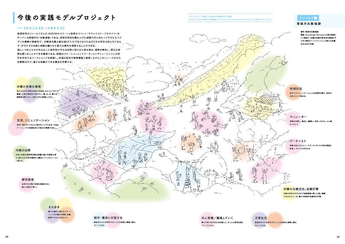 研究は、沖縄で創造的な学びについて活動している人々のインタビューをすることからは始まりました。先輩たちの自分の経験での語りや集まって対話する中での共通項を見つけていきました。